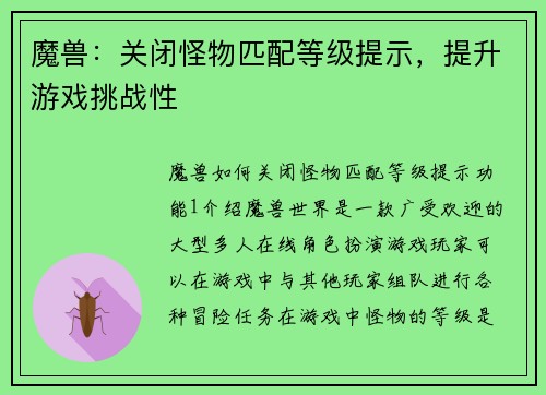 介绍魔兽地图清屏模式 魔兽地图清屏模式是一种在游戏中显示地图位置的功能。它可以帮助玩家更好地了解自己在游戏中的位置,从而更好地制定战略和策略。本文将详细介绍魔兽地图清屏模式的功能、使用方法和注意事项。...